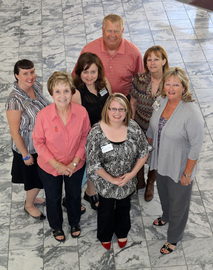 Members of the 50th Anniversary Gala committee are front row from left, Karyn Vaughan, Melody Hubbell and Jeannie Looper; second row:  Amanda Niemotka, Aimee Staggenborg and Brenda Malkowski; back row: Bo Pace.  Other committee members include Joe Kammerer, Kay Garrett and Carol Silvey.  (Missouri State-West Plains Photo)